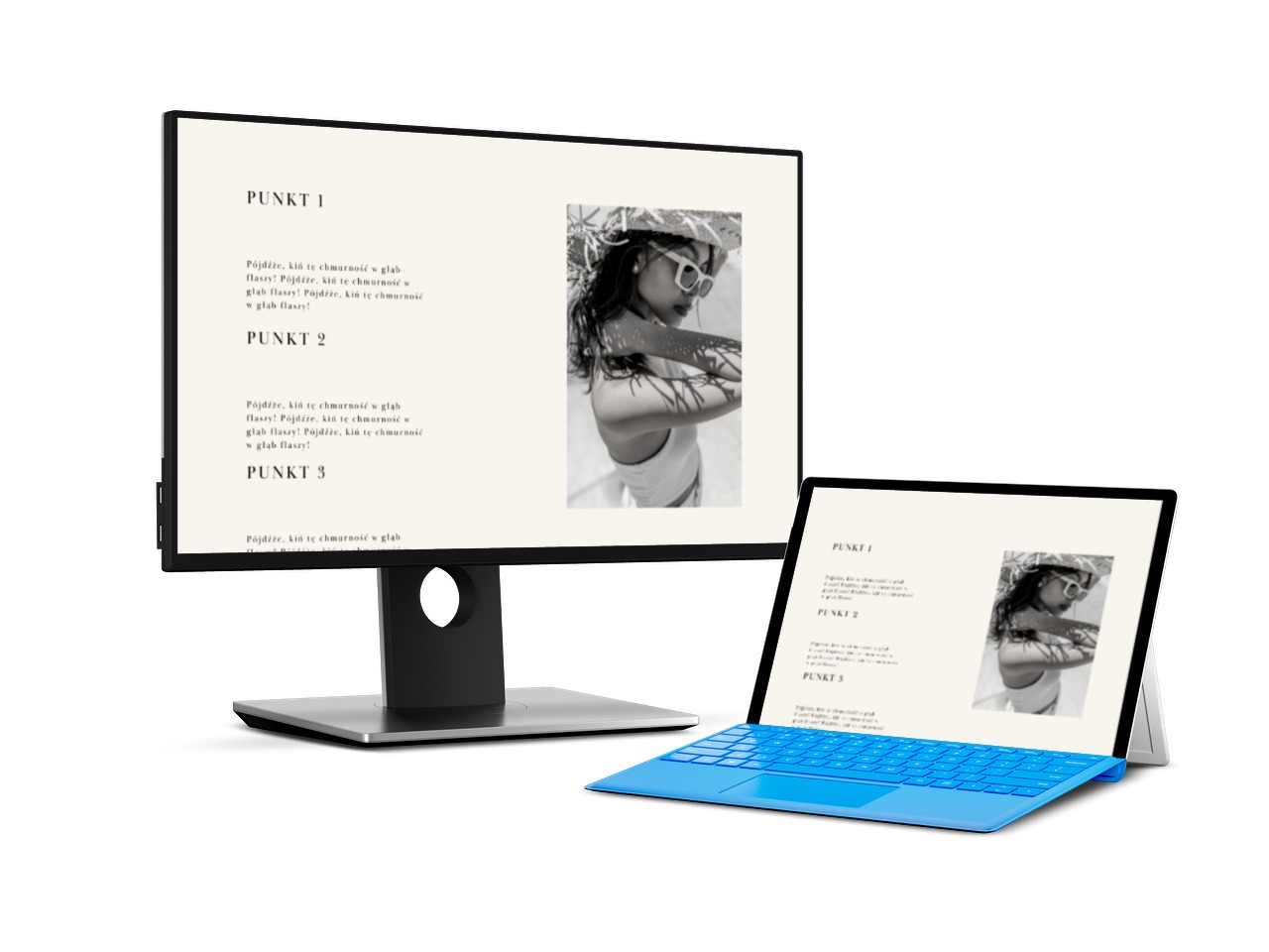 • Pamiętaj, że z projektu możesz korzystać tylko Ty, dla jednej marki – zgodnie z umową licencyjną. Nie możesz przekazywać szablonu ani elementów graficznych innym osobom lub podmiotom do ich wykorzystania.