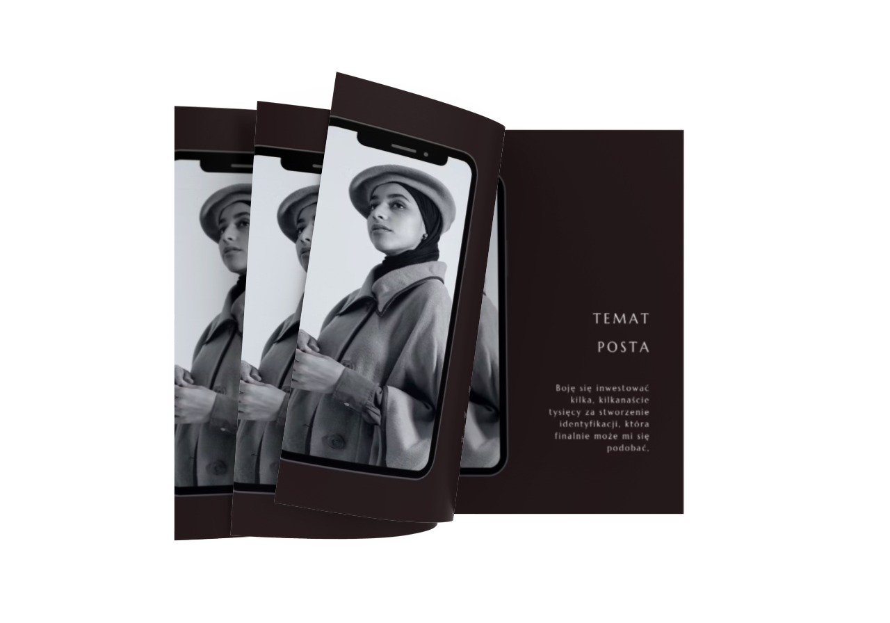 proponowany dobór fontów, kolorów i grafik w spójnej identyfikacji wizualnej, które sprawią, że Twoi potencjalni klienci zakochają się w Twojej marce